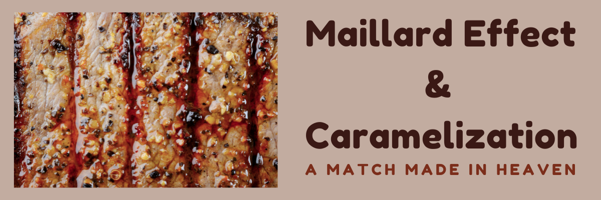 Caramelization is the breakdown of sugars at high temperatures (over 165 degrees) creating a buttery, sweet, and nutty flavor. In the case of caramelization, the molecular structure is broken down–allowing for new compounds to form. With the Maillard, as previously mentioned, the temperatures are below 165 degrees, so the structural integrity of the food remains intact. The resulting changes are the product of the chemical reaction between sugar and amino acids.